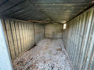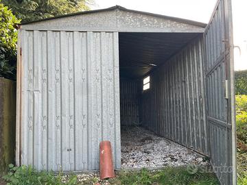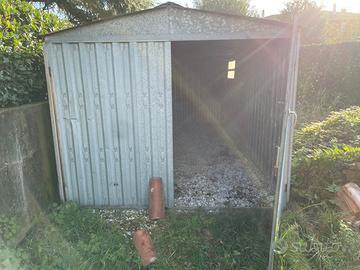 Vendo box auto lamierato o garage da esterno, si presenta in buone condizioni generali, necessita solamente di una piccola riparazione alla cerniera della porta sinistra.