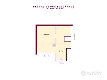 Avente accesso da cancello elettrico prospiciente la via pubblica e da scivola condominiale in comune con le sole altre unità ad uso garage, si compone da un unico locale composto da una prima parte carrabile di circa 25 m² dall'altezza di 3,10 m ed una seconda con diversa quota di circa 35 m² dall'altezza di 2,00 m.