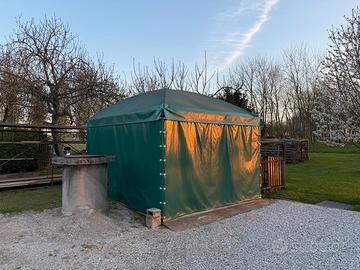 Garage usato in buone condizioni. Dimensioni: 332 mis 448x338. Teli laterali in pvc verde scuro 332. È possibile visionarlo di persona. Prezzo trattabile. Per qualsiasi domanda o informazione, si prega di chiamare il numero +39 349 433 6376 (tutti i giorni dalle 8:00 alle 12:00 e dalle 15:00 alle 19:00).
