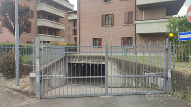 Garage interrato in zona residenziale tranquilla.via disraeli RE. Accesso alla zona garage ,entrata e uscita diversidicata. Accessi chiusi da cancelli automatici. Impianto antincendio.