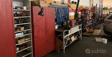 (ATTREZZATA COMPLETAMENTE PER LAVORARE DA SUBITO). officina idonea per effettuare riparazioni dalle moto fino a veicoli pesanti, con attrezzature per auto da corsa e restauri totali auto d'epoca. Tuttora vi è la possibilità di utilizzare più metri con più spazi modulari, fino ad arrivare a 1500 metri quadri coperti piano terra, con 2500 metri quadri di cortili.