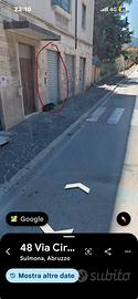 Locale commerciale / box garage con serranda in acciaio da poc riverniciata e porta in vetro con vetrina, con soppalco in legno (con accesso diretto su strada e con ampio marciapiede). Si trova a Sulmona AQ nella circonvallazione Orientale al civico 42