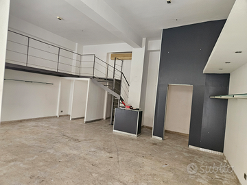 Dotato di faretti a led,camerini,ampio soppalco in ferro battuto,espositori nelle vetrate per manichini,espositori in vetro all'interno.