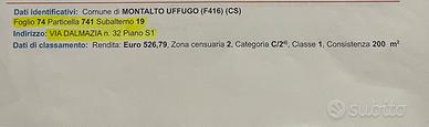 Vendesi/Affitasi magazzino di 200mq a 50 metri dalla strada in Via Dalmazia, Settimo di Montalto Uffugo 87046 (CS). Doppia saracinesca. Collegate tutte le utenze luce e acqua.