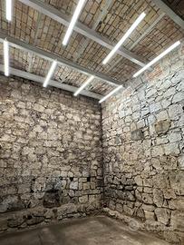 55 mq in piano, h 4,20 mt soffitto, saracinesca divisa in 3 ante apertura 3x3 mt