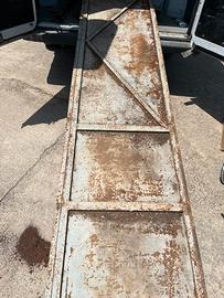 Attenzione la prima foto è dimostrativa. Causa cambio progetto vendo un bel e robusto portone in ferro completo di telaio. L'ultima foto fa vedere l'unica parte marcia, ma molto semplice da riparare. Sono 4 ante per un totale di 3,10 mt di altezza e di 3,25 mt di larghezza Richiesta 350€ Solo contatto telefonico 3491709337 Lillo Si trova a Castrofilippo AG Non spedisco non scambio. Fino che vedete l'annuncio e disponibile.