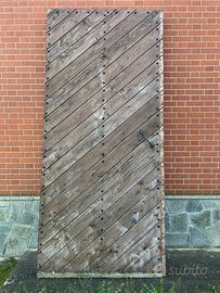 Portone legno massello Doppia anta Telaio scatolato Coibentato e perlinato Completo di accessori Misure: 310x280x12 Ottimo stato, portoncino abbinato in OMAGGIO