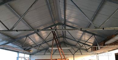 struttura usata in acciaio e pannelli sandwich per ricovero attrezzi misure ml 12,00 x ml 8,00 completamente smontata pronta da riposizionare