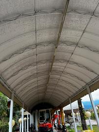 Vendo garage tettoia pre ingresso In ferro e telo Buono stato Larghezza cm 395 circa Lunghezza 8 metri circa Altezza minima 295 massima 380