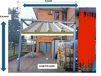 Vendo portico robusto e funzionale, ideale per chi desidera aggiungere un'area coperta e protetta al proprio giardino, cortile o attività commerciale. Realizzato con una struttura in acciaio di alta qualità, offre resistenza e durata nel tempo. Caratteristiche: DIMENSIONI: Lunghezza 8 metri, altezza 3,40 metri, larghezza 4 metri STRUTTURA: Portanti in acciaio, garantendo solidità e stabilità TETTO: Realizzato in materiale coibentato, perfetto per isolare sia dal caldo estivo che dal freddo invernale VERSATILITÀ : Ideale per giardini, cortili, zone relax, parcheggi coperti o come area per eventi DESIGN: Moderno e minimale, si integra facilmente in qualsiasi ambiente esterno CONDIZIONI: Ottime, pari al nuovo Il portico è pronto per essere installato, e la sua struttura lo rende perfetto per qualsiasi tipo di utilizzo. Contattami per maggiori informazioni o per organizzare una visita.