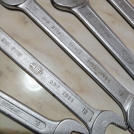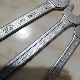 N. 10 chiavi professionali a forchetta doppia "ABC" in acciaio al cromo vanadio Esecuzione cromata -DIN 3110 - Art. 2934 : 8/9- 12/13 (n. 2) - 14/15 (n, 2) - 16/17 (n. 2) - 18/19 - 20/22(n. 2) vendo per chiusura attivita' ad Euro 35,00. Spedizione disponibile.