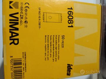 Vendo lotto di 10 pulsanti elettrici originali Vimar, serie Idea (codice 16081). I componenti sono nuovi, mai usati, ancora nelle loro scatole originali.