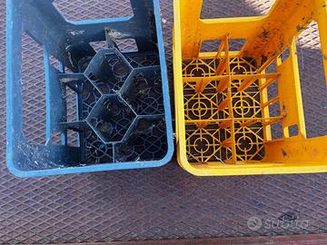 Cassette portabottiglie pvc gialle e grigie per vino acqua ecc a 6 o 8 posti. Usate ma in ottimo stato. Disponibilità circa 100 in totale. € 10 € cadauna