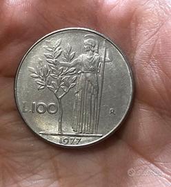 Moneta da 100 lire italiane, coniata nel 1977.