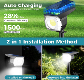 【2 in 1 di facile installazione】Facile da installare. Dotato di un angolo di illuminazione più ampio di 360° e di un pannello solare più grande regolabile a 120°, il faretto solare Kolpop per esterni fornisce una copertura più ampia di luminosità, che può illuminare uno spazio di oltre 1600 metri quadrati di notte