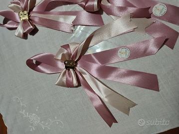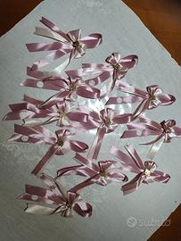 Vendo lotto di 11 fiocchi artigianali realizzati a mano, ideali come segnaposto o decorazione per bomboniere di un diciottesimo compleanno.