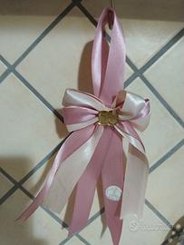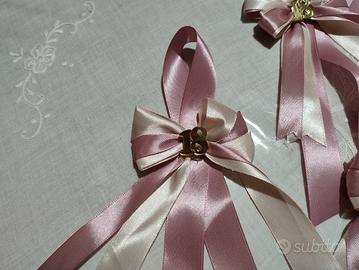 - Colori: Doppio nastro in raso rosa antico e rosa tenue.