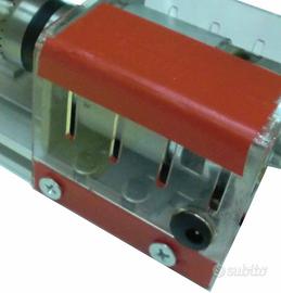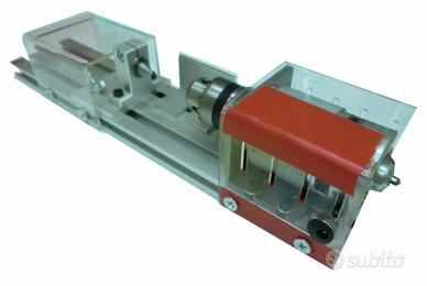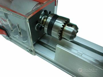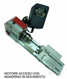110 MINI TORNIO base in alluminio con corsa registrabile – mandrino da mm.0,6 a mm.6 - alimentazione 220v con trasformatore da 9v – potenza 100w dimensione cm.34x7x7h. - massimo spazio in lunghezza utile cm.12 NO SPEDIZIONE