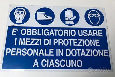 12 cartelli segnaletica di sicurezza laboratorio in METALLO. In particolare: - 2 cartelli "Attenzione corrente elettrica" 35x12 - 1 cartello "Non rimuovere i dispositivi e le protezioni di sicurezza" 35x12 cm - 1 cartello "Qui non usare acqua per spegnere incendi" 35x12 cm - 2 cartelli sul trasporto bombole 35x12 cm - 2 cartelli "è obbligatorio proteggere gli occhi" 35x12 cm - 1 cartello "proteggere le vie respiratorie con apposite maschere" 40x30 cm - 2 cartelli "mola.. diametro massimo.. albero motore.. tipo di impasto" - 1 cartello "è obbligatorio usare i mezzi di protezione personale in dotazione a ciascuno" 50x 30 cm. - 2 cartami mole ecc.. 23x23 cm USATO in buone condizioni. Prezzo per l'intero lotto: 29 euro. SOLO CONSEGNA A MANO zona Piazza Benini. Non spedisco.