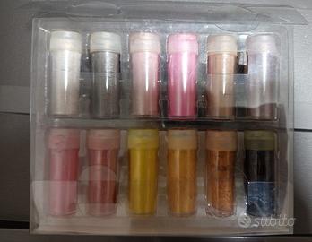 Nuovi. Mai aperti. 12 coloranti di Polvere di Mica-pigmento naturale per resina epossidica. Ogni barattolino contiene 5 gr. di prodotto.