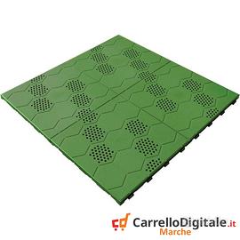 120 Piastrelle pavimento plastica verde drenante. Prezzo 456 euro IVA E TRASPORTO INCLUSI. Possibilità di pagare alla consegna con un sovrapprezzo di 6 euro IVA inclusa 120 Piastrelle pavimento resina verde drenante Piastrella autobloccante in polipropilene, 400x400xh25 mm di ingombro, 390x390xh25 mm superficie netta. Idonea per uso esterno: vialetti, pavimentazione sotto gazebo e salottini dehors, zone pic nic, dehors bar, campeggio, piscine e serre, giardino. Semplice e rapido montaggio e smontaggio senza utensili. Prodotto italiano ecosostenibile. CARATTERISTICHE -Larghezza 400 mm -Lunghezza 400 mm -Spessore 25 mm -cellette a nido d’ape sul fondo per dare maggiore portata -design realizzato in modo da creare una piastrella che possa soddisfare entrambe le richieste di drenante e piena -disegno che permette la combinazione di aggancio a un quarto e due quarti -abbinamento sfalsato ma con continuità di disegno dell’intera superficie. -Piastrelle munite di incastri laterali per la giunzione. -Portata statica 9000 kg/mq distribuiti uniformemente Contattaci per maggiori quantità e per avere ulteriori informazioni. Oppure inviaci un messaggio con il tuo numero e ti richiameremo non appena possibile Telefono/Whatsapp: