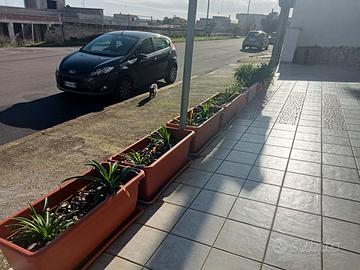 TOTALE DI 13 PEZZI IN TUTTO : N.8 VASI IN PVC COMPLETI DI SOTTOVASO LUNGHI 1MT + 5 VASI DA 80 CM LUNGHI IN PVC DOPPIO, DECORATO IN RILIEVO.