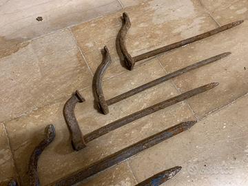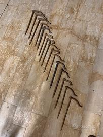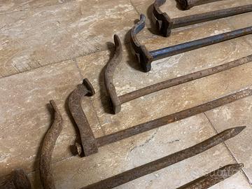 Antichi ferri da muratore/carpentiere usati per fermare e sorreggere le tavole vicino i muri di pietra. Sono 15 in totale