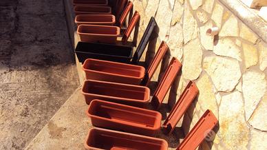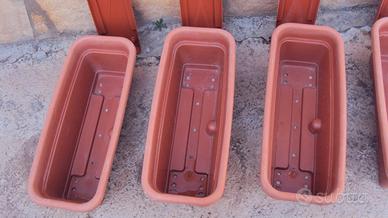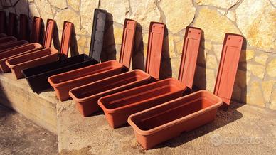 Vendo 10 vasi rettangolari in plastica fioriera lunghezza cm. 50 - larghezza cm. 20 - altezza cm. 16. Poi altri 5 vasi in plastica sempre tipo fioriera lunghezza cm. 59 - larghezza cm. 20 - altezza cm. 17. tutti muniti di sottovaso prezzo 40,00