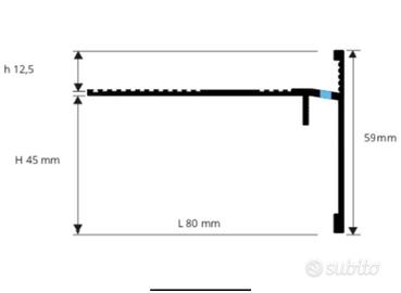- 19 metri ca di profilo marca Progress Profile tipo ProSIDE WALK h 12,5 mm colore grigio goffrato (VDS. FOTO misure, 12,5 mm si riferisce non all’altezza totale ma a quella dal livello del pavimento, ovvero per piastrelle di 10mm di spessore in n. 7 bacchette intere da 2,7 m piu’ 1m di rimanenze, e’ stato usato anche con piastrelle da 0,8 prestando attenzione a mettere almeno 0,5 di colla);
