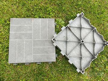 Per cambio progetto dispongo di diversi metri quadri di piastrelle in materiale plastico composito wpc da 40x40x5 cm agganciabile lateralmente per decking interno esterno, uso gazebo piscina giardino vialetti garage (carrabilile), in sostituzione a Piastrelle piastre in cemento e graniglia/ghiaino. Fatti un regalo per Natale: un nuovo pavimento per esterno, per il tuo garage o la casetta in legno