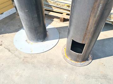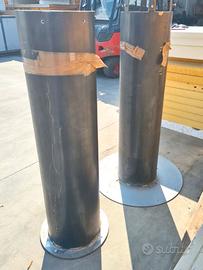 2 basi per pilastri in ferro usati, in realtà non sappiamo di cosa si tratta e lasciamo campo alla vostra creatività di seguito indicazioni tecniche. dimensioni: Ø77/32cm h133cm / Ø44/32cm h126cm, sp. 5mm vendita solo in blocco a 220,00€