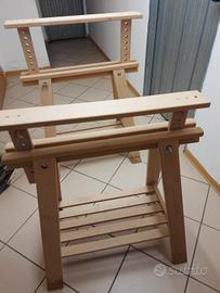 2 cavalletti in legno con altezza regolabile e ripiano intermezzo.