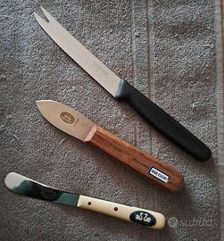 Residuo di magazzino di un ex negozio di coltellerie e casalinghi (Trieste, via G. Marconi) si vendono tre coltellini nuovi per la tavola: - coltellino spalmaburro della marca italiana DUE CIGNI - coltellerie di Maniago (PN): lama in acciaio inossidabile, manico in bachelite bianca. Lunghezza cm 16. Costo euro 6,00. - coltellino per le forme di grana, marca 2 CIGNI, lama in acciaio inossidabile, manico in legno massiccio. Lunghezza cm 16, costo euro 8,00. - coltellino per agrumi della marca svizzera VICTORINOX; lama seghettata in acciaio inossidabile con due punte e manico nero resistente in lavastoviglie. Lunghezza cm 21. Costo euro 8,00. Euro 20,00 per tutti e tre. Eventualmente spedibili anche abbinati ad altri articoli in vendita o in regalo. L'eventuale spedizione con contrassegno postale (euro 11,35 +1,81 per pacchi fino a 3 kg), con pagamento in contanti alla consegna, sarà a carico dell'acquirente. Si prega di contattare tramite Whatsapp (338-1774922)