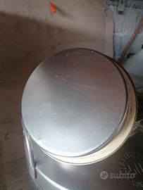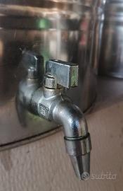 2 contenitori da lt. 50 ognuno in acciaio inox 18/10 per olio alimentare, uno è con rubinetto in acciaio, entrambi sono con bocca larga e tappo a vite con guarnizione in gomma, altezza cm. 57, diametro cm. 38,usati poche volte per olio extravergine di oliva, come nuvi.