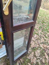 Vendo due finestre legno con doppi vetri ( tot 4 ante). Altezza finestra completa 218 cm larghezza 100 cm .Solo ritiro a mano.