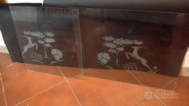2 vetri decorati, facevano parte di un mobile degli anni '50/60. Il più grande misura 40 cm. x 50. Li vendo a 15 euro. Dispongo anche di 4 mensole 20 x 70 in vetro spesso, non in foto, che vendo, in blocco, a 15 euro e di altri vetri ancora. NON SPEDISCO.
