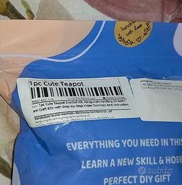 vendo 2 kit crochet, uno ancora sigillato, l'altro aperto, contenuto mostrato in foto. nel foglietto c'è un qr code con video tutorial. i soggetti sono scritti sull'etichetta, un fungo e una teiera. il video tutorial non è dettagliatissimo, un pò complicato per principianti assoluti.