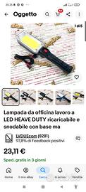 Lampada da officina lavoro a LED ricaricabile e snodabile con base magnetica ed intensità luce regolabile con cavo USB per la ricarica compreso
