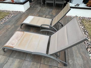 Due Lettini prendisole con struttura in alluminio, tessuto in textilene,schienale regolabile marchio Cosma outdoor living. Ottime condizioni struttura, tessuto solo perso colore al sole.