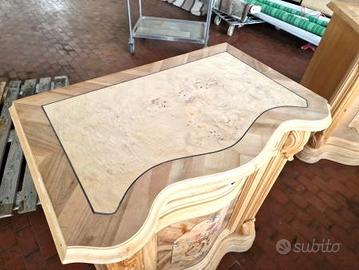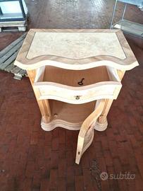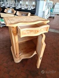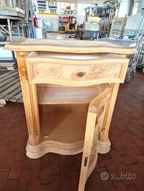 2 mobili in legno grezzo da lucidare, si tratta di due mobiletti con decori ma non lucidati. dimensioni: 80X51cm h88cm. uno costa 280,00€, tutti e due 500,00€ più iva e trasporto
