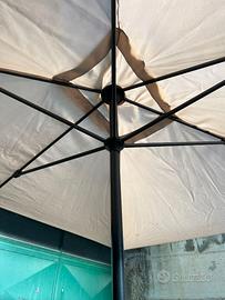 OFFERTA STOCK: 2 ombrelloni rettangolari 3×2 m completi di base in cemento, in ottimo stato, apertura a manovella, altezza 2,30 m.