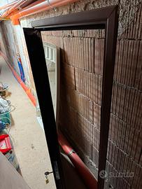2 Persiane con zanzariera in Alluminio Effetto Legno con serratura a croce, lamelle fisse non orientabili, misure circa 70x140cm. Spessore circa 5cm. 1 apre a sinistra, 1 apre a destra.
