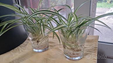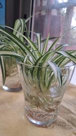 2 piante di Chlorophytum capense detto anche falangio o nastrino di Maria coltivato in coltura idroponica (in acqua).