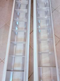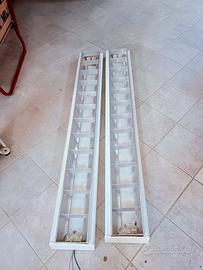 Vendo 2 plafoniere a griglia per tubi neon, in metallo. Ideali per garage, laboratori, officine o ambienti industriali. Struttura a griglia riflettente con attacchi per doppio tubo lineare (non inclusi).