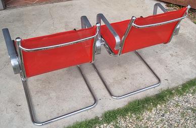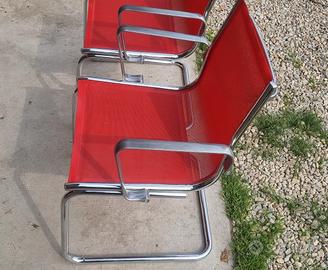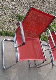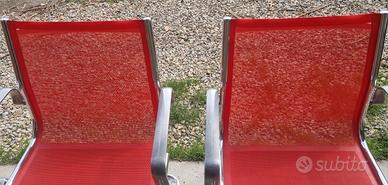 Due sedie da ufficio bellissime come da foto, struttura cromata con piedini originali, maniglie poggiagomiti o braccioli in alluminio, seduta e schienale in rete microforata rossa, perfette anche per esterno, terrazzo o giardino