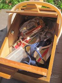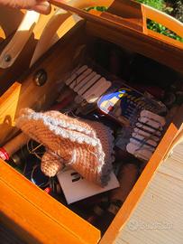 porta lavoro legno cucito pieni di accessori, filo, bottoni ecc. eventualmente vendo separatamente, prezzo riferito ad entrambi.