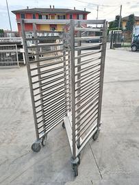 2 porta vassoi impilabili per cucine usati, si tratta di due carrelli porta teglie in acciaio inossidabile con base a Z che possono essere impilati.