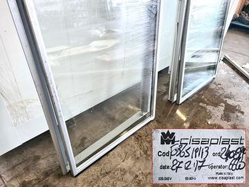 2 porte vetrate usate, si tratta di due porte con vetrata utilizzate nelle fiere espositive e per questo dotate di luci all'interno, sono di due dimensioni diverse ma le vendiamo come vetrate per murali frigo. di marca Cisaplast mod. F365/9/13 del 2017 adatte per essere montate su spessore 11cm. disponibilità: