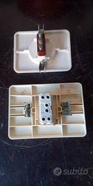 2 pezzi prese elettriche casa mono da incasso in scatola tonda, 3 poli: fase, neutro, massa, usati, perfettamente