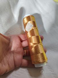 Due rocchette da 50 grammi di filo di viscosa lucida di un bellissimo colore giallo oro.